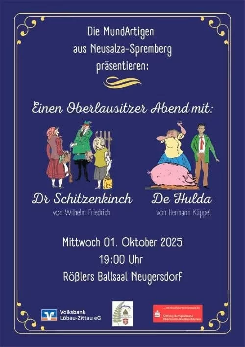 Die Theatergruppe "Die MundArtigen" präsentieren einen Oberlausitzer Abend in Rößlers Ballsaal am 01. Oktober 2025
