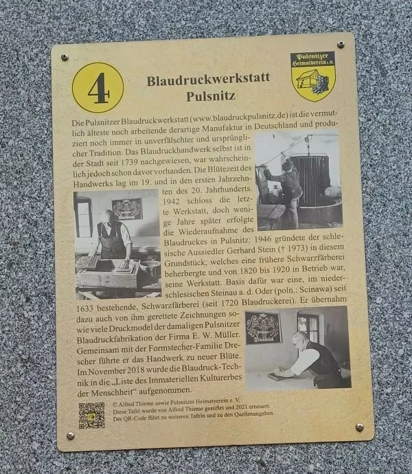 Am Samstag, den 10.05.2025 fand unsere Exkursion nach Pulsnitz statt. Los ging es 11.00 Uhr ab Reiterhaus mit dem Reisebus. Eine angenehme Fahrt, die auch entlang an gelb gesäumten Rapsfeldern führte. Es war ein sehr schöner Tag mit vielen Eindrücken. Sehr interessant war die Führung in der Pulsnitzer Blaudruckwerkstatt GmbH. Dort bekamen wir eine Vorstellung darüber, wie zeitaufwendig es ist Blaudruck herzustellen und um was für eine alte Technik und Tradition es sich hierbei handelt. Auch die Führung in der Pfefferküchlerei Löschner war beeindruckend. Alles Handarbeit und zum Teil schwere Arbeit, sei es Verpackung oder Transport innerhalb des Hauses. Nach den Führungen ging es zu Kaffee und Kuchen und es blieb ausreichend Freizeit, um die Umgebung zu erkunden und somit die schöne Parkanlage und die Laubengänge zu genießen. Ein großes Dankeschön geht an die Organisatoren, das Ehepaar Hänsel. Alles war bestens organisiert. Der Abschluss war ein leckeres Abendbrot im Kretscham zu Oberfriedersdorf. Wir freuen uns auf die nächste Exkursion und sind jetzt schon sehr gespannt, wohin diese uns führen wird. Zu unseren Exkursionen und Wanderungen sind auch Nicht-Vereinsmitglieder immer herzlich willkommen.